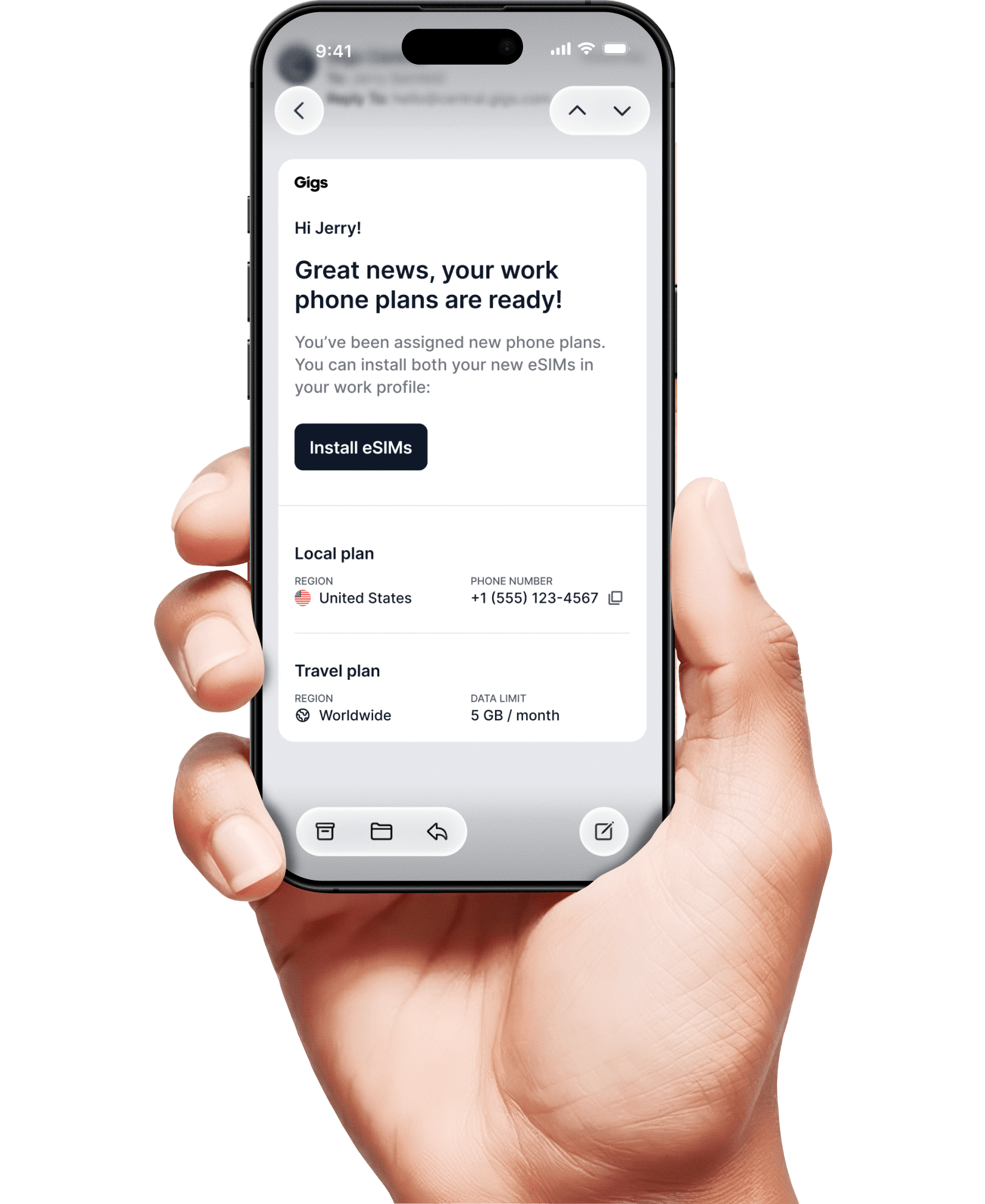 Send SIMs to employees through the business tools they already use every day, like Slack, Teams, WhatsApp, and email.