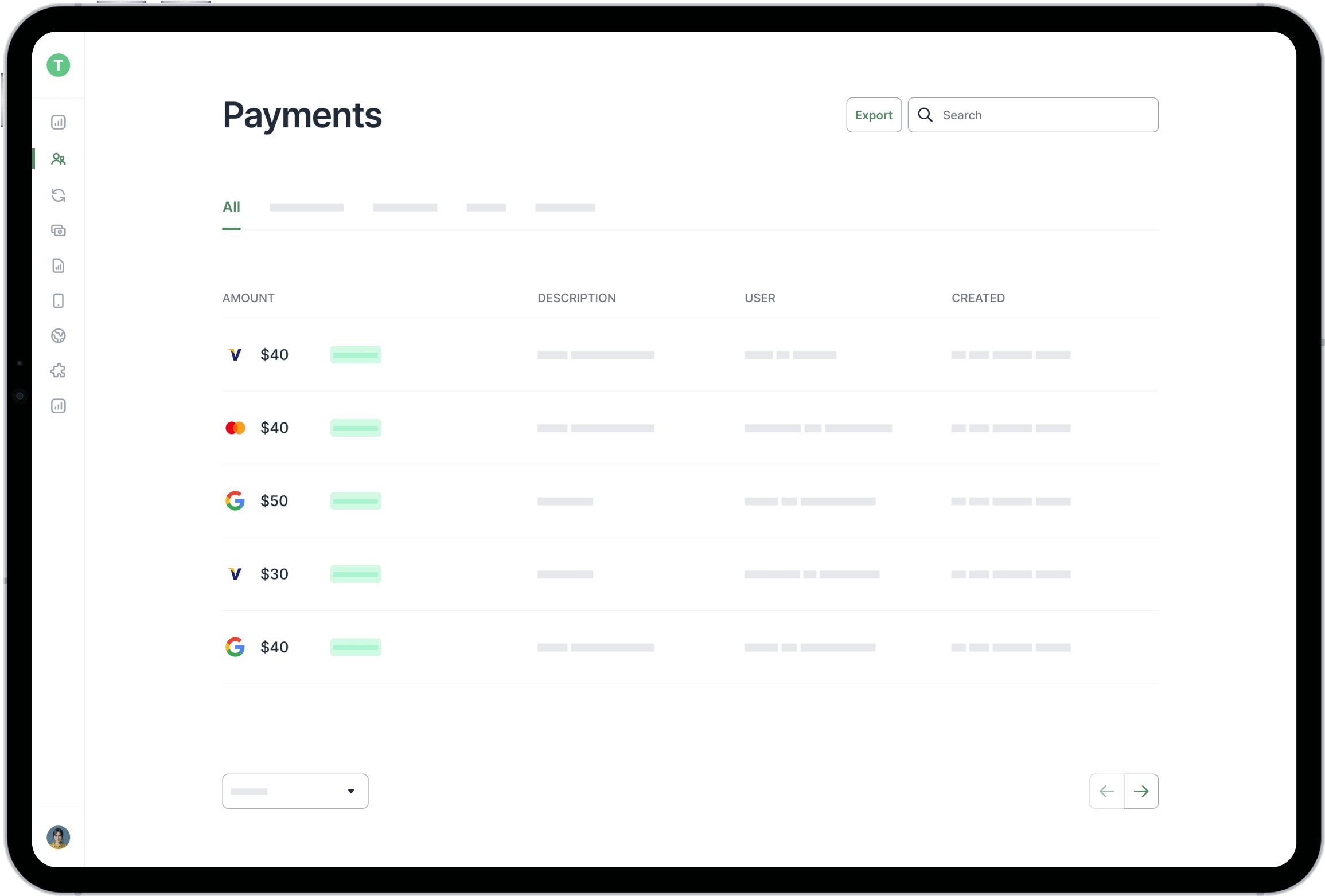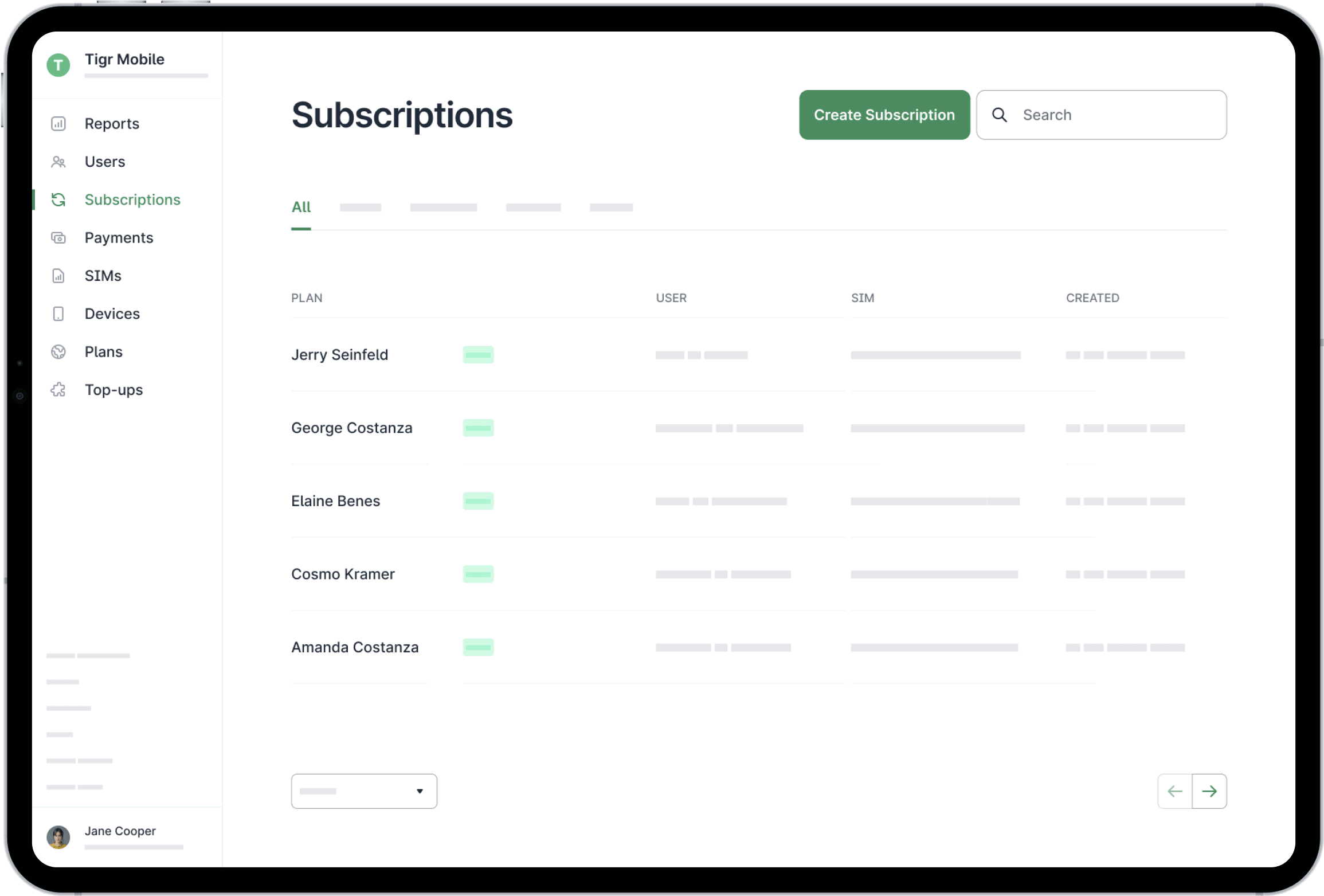 Get a 360° view on subscriptions including user data, payment history, devices and SIMs.