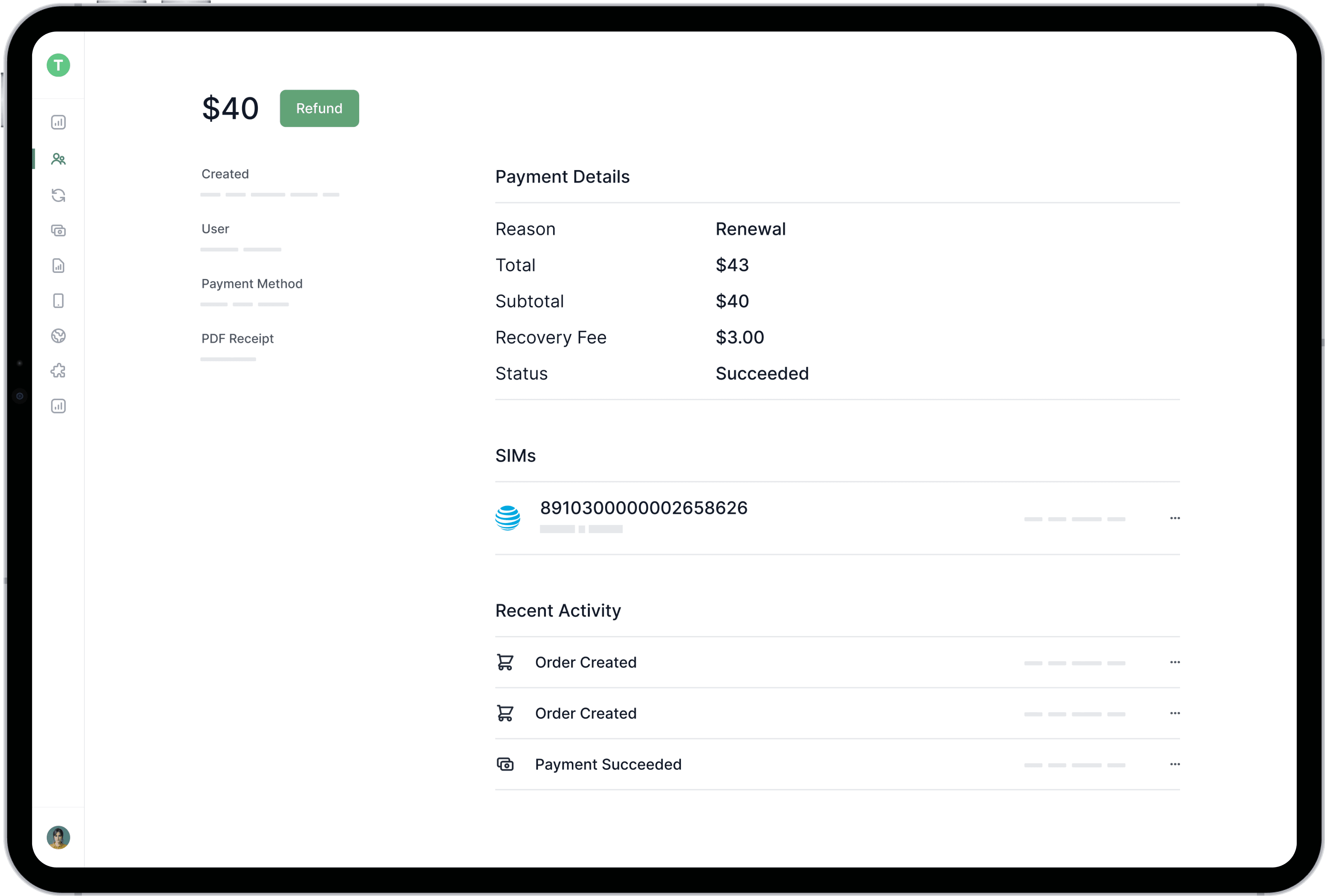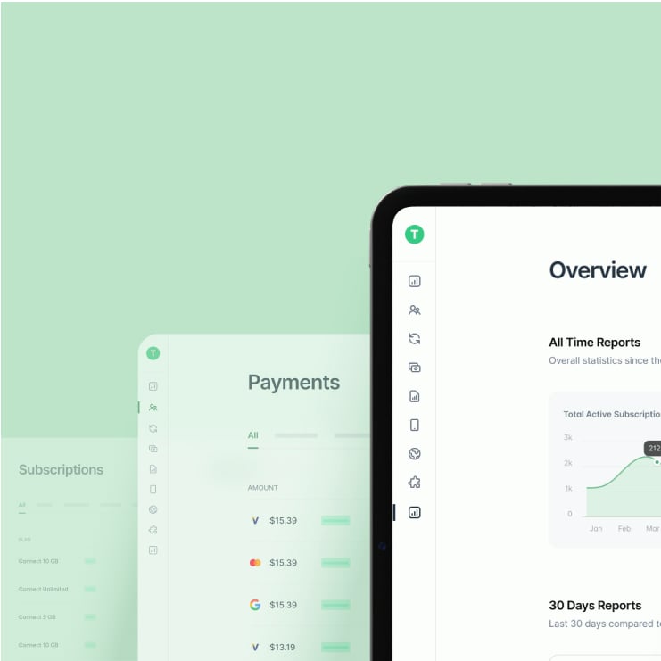Resolve support queries with one click. Every subscription, metric, payment, SIM and device, all in one interface. Dashboard is always included, no matter what implementation path you choose.