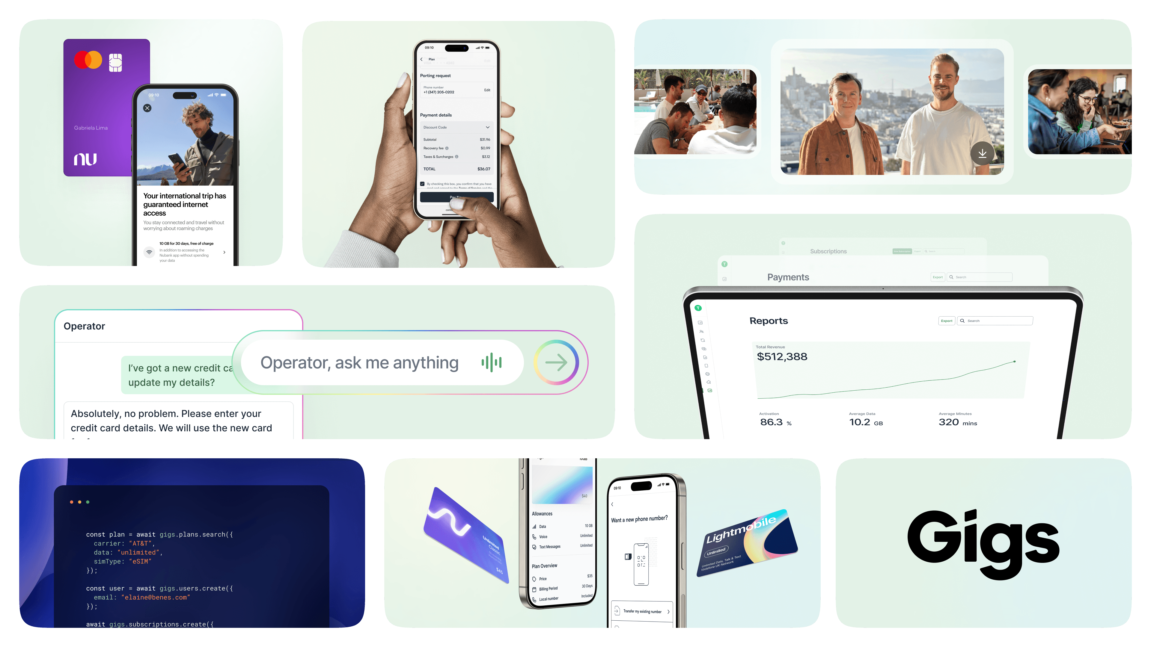 Gigs provides access to more than 500 carriers across the globe through one single API